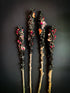 Used for hundreds of years for rituals, ceremonies, celebrations and funerals, Hag Torches or Witch Candles have a special place in the harvest months. Celebrate your inner hag with these very special candles. Dried stalks of the Mullien plant, dipped in beeswax (*coloured black with charcoal) and rolled in dried roses and lavender. These candles burns 15 min per inch of stalk. Keep away from flammable materials as these torches burn bigger and brighter than regular wicked candles. Can be held or placed in a candlestick. Non toxic. Made with local beeswax, and wildcrafted botanicals.
